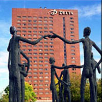 CHECK-IN 1500 / CHECK-OUT 1200 -FAMILY PLAN - CHILDREN 18 AND UNDER FREE WHEN ACCOMPANIED BY PAYING ADULT. . -CANCEL POLICY- ALL RESERVATIONS MUST BE CANCELLED BY 1600 LOCAL TIME ON THE DAY OF ARRIVAL. *****CALGARY STAMPEDE JULY 5TH - 15TH, 2007***** 1 NIGHT DEPOSIT CHARGED WHEN MAKING RSERVATION RESERVATIONS CANCELLED ON OR PRIOR TO JUNE 3 DEPOSIT IS REFUNDABLE. IF CANCELLED JUNE 4 OR LATER FULL STAY NON REFUNDABLE . -CREDIT CARDS ACCEPTED- AMERICAN EXPRESS, DINERS CLUB, DISCOVER CARD, JAPAN CREDIT, MASTERCARD, VISA. . -PET POLICY **ALL DELTA HOTELS AND RESORTS HAVE A PET CHARGE OF $35 PER STAY/ROOM TO COVER ADDITIONAL CLEANING COSTS. IF YOUR STAY EXCEEDS 5 NIGHTS THEN AN ADDITIONAL $ 35 WILL APPLY WITH THE HOTEL TEAM CONDUCTING THE DEEP CLEANING ON THE ON THE 5TH DAY. MAXIMUM OF TWO PETS PER ROOM. PLEASE KEEP YOUR PETS ON A LEASH AT ALL TIMES. WE WOULD PREFER THAT YOUR PET NOT BE LEFT UNATTENDED IN YOUR ROOM. IF YOU NEED TO LEAVE WITHOUT YOUR PET, PLEASE INFORM THE FRONT DESK AND LEAVE A CONTACT NUMBER WHERE YOU CAN BE REACHED SHOULD YOUR PET BECOME AGITATED. ANY DAMAGES TO THE ROOM CAUSED BY YOUR PET WILL BE ADDED TO YOUR CREDIT CARD. MAXIMUM 4 PERSONS PER ROOM 12.00 PERCENT INCLUDED IN RATES NO MEAL PLAN INCLUDED IN RATES -EXTRA PERSON CHARGE OF 15.00CAD -SELF PARKING 11.00-17.00CAD PLUS TAX/NIGHT -SELF PARKING 19.00-25.00CAD PLUS TAX/NIGHT