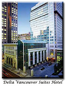 CONCIERGE SECRETARIAL SERVICES MULTILINGUAL STAFF BEAUTY SALON CAR/LIMOUSINE RENTAL GIFT SHOP DOCTOR/MEDICAL SVC ICE MACHINES -FEES MAY APPLY TO ABOVE FACILITIES . FITNESS CENTER - NO CHARGE HOURS - DAILY 0500 TO 2400 -STAIRMASTER, TREADMILL, INDOOR ROWER, STATIONARY BIKE, UNIVERSAL WEIGHTS, FREE WEIGHTS. . NEWLY RENOVATED ALL SUITE HOTEL, LOCATED IN THE HERITAGE DISTRICT OF DOWNTOWN VANCOUVER . THIS MODERATE, DELUXE HOTEL IS IDEALLY LOCATED IN THE HEART OF DOWNTOWN VANCOUVER BUSINESS DISTRICT. THIS IS A 4.5 STAR, FULL SERVICE, ALL-SUITE HOTEL. THE DELTA VANCOUVER SUITE HOTEL IS CONNECTED TO THE MORRIS J WOSK CENTRE, AND IS MINUTES FROM VANCOUVERS TRADE AND CONVENTION CENTER, THE WORLD TRADE CENTER, STANLEY PARK, GASTOWN AND MUCH MORE. -NUMBER OF GUEST ROOMS - 224 -NUMBER OF FLOORS - 23 AIRCONDITION BABY-SITTING BAR BUSINESS CTR ELEVATOR EXECUTIVE FLR HAIR DRYER HANDICAP FAC ICE MACHINES LAUNDRY SVC LOUNGE MEETING ROOMS MINIBAR MOVIE CHANNELS NONSMOKING RMS PARKING PC HOOKUP INRM PETS ACCEPTED PHONE-DIR DIAL RESTAURANTS ROOM SERVICE SAFE DEP BOX SPA TELEVISION VALET PARKING |