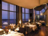 На 36-ом этаже гостиницы Shangri-La в Сиднее расположились ресторан Altitude и бар Blue Horizons. Благодаря продуманной расстановке зеркал все гости могут наслаждаться восхитительными видами на воду, мост и Оперу (см. изображение).