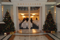 Отсюда Вы сможете увидеть новогодние фейерверки и наблюдать, как отмечает этот праздник весь город. Отпраздновав Новый Год в отеле «Амбассадор», вы получите заряд положительной энергии на весь год. Стоимость новогоднего ужина - 3.500 рублей. В меню: филе копченого угря с салатом из маринованной паприки, дорадо жареная с миндалем, тирамиссу с клубничным соусом и другие деликатесы. Подробнее ознакомиться с меню можно на сайте гостиницы www.ambassador-hotel.ru.