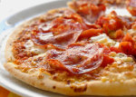 Пицца 4-сезона: с Пармской ветчиной, тигровыми креветками, грибами, сыром «Горганзола»