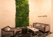 Distrikt Hotel — это новый бутик отель в самом сердце района Мидтаун на Манхэттене, в шаговой доступности от таких достопримечательностей, как Таймс-Сквер, Бродвей, Медисон-сквер-гарден и Рокфеллеровский центр. В дизайне 32-этажного небоскреба отразились архитектурные особенности разных кварталов Манхэттена: каждый этаж выполнен на тематику одного из кварталов, от Уолл-Стрит на нижнем этаже до Гарлема наверху. В оформлении каждого из них также использованы гигантские коллажи местного художника Криса Рубино, составленные из более 10 тыс. фотографий. А лобби украшено «живой стеной», напоминающей о Центральном Парке.