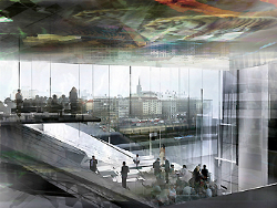 Здание отеля, выполненное из стали и стекла, наполнено светом и воздухом. Для того, чтобы придать красок отелю Жан Нувель пригласил современную швейцарскую художницу Пипилотти Рист (Pipilotti Rist). Используя современные технологии, она создала 5 прекрасных движущихся видео-потолков, состоящих из специальных мониторов.