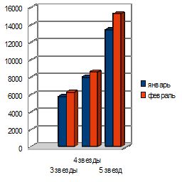 Трехзвездочные отели Москвы, как уже подчеркивалось ранее, не стали делать существенных различий в праздничный и будний периоды. Тем не менее, уже к концу месяца отельеры, работающие в среднем ценовом сегменте, незначительно подняли стоимость проживания в стандартном номере на 4% (5 841 рубль). Более того, уже к концу февраля ADR (average daily rate или средняя суточная стоимость номера) для данной категории отелей планируется увеличить еще на 7% (или до 6 241 рубля за стандартный номер). Завершив новогодний период больших скидок, четырехзвездочные отели Москвы вновь ждут своих привычных постояльцев - бизнес-туристов. С окончанием праздничного периода вернулся в прежнее русло и привычный спрос на отели высокой категории среди туристов, приезжающих в столицу. Этим фактом не преминули воспользоваться отельеры, отказавшись от политики существенных скидок. Так, на конец января среднесуточная стоимость номера в отеле 4 звезды составила 8 065 рубля, что выше стоимости размещения в праздничный период в среднем на 12%. Деловая активность также обусловила рост стоимости размещения в отелях данной категории в феврале. Среднесуточная стоимость номера в четырехзвездочном столичном отеле росла на протяжении всего месяца (+4% в первой половине февраля и +3% - во второй). Таким образом, исходя из данных сайта HOTELS.SU, стоимость стандартного номера в отеле высокой категории в феврале увеличилась на 7% в сравнении с январем и составила 8 582 рубля в сутки.