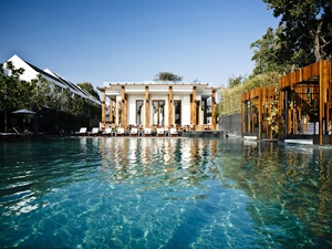 Cape Nidhra - известный тайский отель , расположенный в курортном городе Хуа Хин . Конкуренция в отрасли гостеприимства Таиланда достаточно высокая, поэтому ради привлечения внимания клиентов отели и гостиницы используют оригинальные маркетинговые решения. К примеру, Cape Nidhra привлекает потенциальных клиентов предоставлением необычного сервиса. Здесь Вы сможете смотреть художественные фильмы в ...пляжном бассейне, расслабившись на плавающем диване, что называется, при свете звезд. Кинотеатр под открытым небом показывает гостям классику голливудского кинематографа.