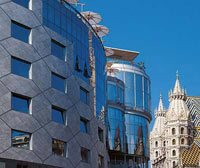 |  | DO & CO HOTEL Вена, Австрия Этот отель был создан знаменитым архитекторов Хансом Холлейном. Он расположен в самом сердце Вены, в пешеходной зоне напротив Собора Святого Стефана. На четырех этаж этого здания из стекла и стали разместились конусовидные номера, чья экстравагантность прекрасно вписывается в современный футуристический дизайн отеля. Верхние этажи отеля заняты прекрасными ресторанами с широким разнообразием блюд - от суши до венской кухни.