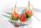 Маринованный лосось с клубникой, лакрицей и соком лайма (закуска)- 530 руб.