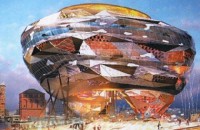 Проект нью-йоркского архитектора Эйтана Кауфмана в Абу-Даби представляет из себя отель на 264 номера в виде аэростата, парящий над мостом, соединяющим главный остров с островом Лулу. Опять же, гостиница не построена из-за финансовых проблем.