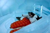 Гостям ледяной гостиницы придется спать в спальных мешках, поскольку стены толщиной около 15 сантиметров всё же полностью не спасают от морозов, и температура внутри номера составляет всего около -3 градусов.