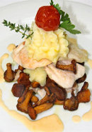 Кусочки жареной курицы с лисичками и картофельным пюре - 750 руб