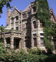 B1Q-THE CONSERVATORY- CHEERFUL ROOM WITH BAY WINDOWS OVERLOOKING THE ENGLISH GARDEN. FURNISHED IN WICKER, WITH QUEEN BED WITH FEATHER TICK, AND A QUILT MADE BY JIM-S MOTHER ON THE WALL BEHIND THE BED. BATHROOM HAS ORIGINAL MARBLE SINK, CLAWFOOTED TUB AND PULL CHAIN WC. S1K-PRESIDENTIAL SUITE- OUR PREMIER ACCOMMODATION, WITH KING SIZE TESTER BRASS BED WITH FEATHER TICK. THROUGH LACE COVERED FRENCH DOORS, YOUR WHIRLPOOL TUB AWAITS YOU. BATHROOM HAS A SHOWER, STOOL, AND BASIN. YOUR 2ND FLOOR PRIVATE BALCONY OFFERS YOU A VIEW OF DOWNTOWN DENVER AND THE SHOW CAPPED ROCKIES BEYOND. S1Q-VAN CISE ROOM- SUNNY SOUTHERN EXPOSURE, QUEEN SIZE BED WITH FEATHER TICK DATING FROM 1889, YOUR BATHROOM FEATURES THE ORIGINAL MARBLE TOPPED SINK, CLAWFOOTED TUB AND UNIQUE TILED WALLS. ORIGINAL FIREPLACE MARBLE, ANTIQUE WRITING DESK, AND CHARCOAL DRAWING BY ADELE HERSELF COMPLIMENT THE ROOM. RELAX BENEATH THE STARS IN YOUR PRIVATE TRELLIS ENCLOSED TWO PERSON HOT TUB ON YOUR OWN 2ND FLOOR BALCONY. C1Q-LANG ROOM- NAMED FOR WILLIAM LANG, THE FAMOUS ARCHITECT, THIS 2ND FLOOR ROOM WITH IT-S HIGH GOUR POSTER QUEEN BED WITH FEATHER TICK AND ORIGINAL BLACK ASH WOODWORK IS VERY SPECIAL. SHOWER, STOOL AND BASIN BATH FACILITY. D1D-RAYMOND ROOM- NAMED FOR THE CASTLE-S FIST OWNER, IT HAS AN ANTIQUE WHITE IRON AND BRASS DOUBLE BED WITH FEATHER TICK. RELAX UNDER THE STARS ON YOUR OWN 2ND FLOOR BALCONY SOAKING IN YOUR PRIVATE HOT TUB. D1Q-MELISSA-S ROOM- SNUGGLE INTO YOUR QUEEN SIZE BED WITH FEATHER TICK UNDER A 14 FOOT CATHEDRAL CEILING. ENJOY THE COMPANY OF OUR DAUGHTERS COLLECTION OF RAGGEDY ANN DOLLS. A1D-COLONEL PLATT-S ROOM- NAMED FOR A FAMOUS CIVIL WAR COLONEL, U.S. REPRESENTATIVE,AND EARLY DENVER INDUSTRIALIST, THE ROOM OFFERS ALL THE ULTIMATE IN SECLUSION. ITS 3RD FLOOR PRIVATE OUTDOOR HOT TUB IS TUCKED UNDER AN OVERHANGING EAVE AND SURROUNDED BY LATTICE FOR COMPLETE PRIVACY. WITH ANTIQUE DOUBLE BED AND FEATHER TICK, IT IS THE ULTIMATE FOR ROMANCE. D2T-TOWER ROOM- LARGE AIRY ROOM FEATURING 18 FOOT CATHEDRAL CEILINGS, AS IT WAS WHEN IT WAS PART OF THE MANSIONS BALLROOM. ANTIQUE ARMOIRE, FIREPLACE MANTEL, AND RECESSED SITTING AREA MAKE THIS ROOM A SPECIAL RETREAT. TWIN BEDS. PRIVATE BATH JUST ACROSS THE HALL. A1Q-JOHN MASON ROOM- NAMED FOR THE MANSIONS 3RD OWNER, WORLD RENOWNED NATURALIST AND FATHER OF DENVER-S MUSEUM OF SCIENCE AND NATURE. QUEEN SIDE BED WITH FEATHER TICK, 18 FOOT CATHEDRAL CEILINGS, ALONG WITH YOUR IN ROOM WHIRLPOOL TUB FOR 2, COMBINE TO MAKE A ROMANTIC GET-AWAY RETREAT.
